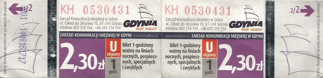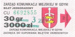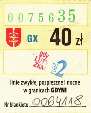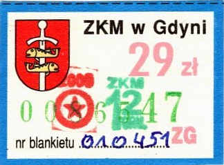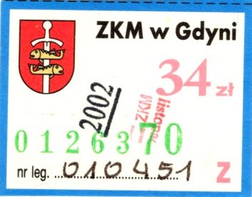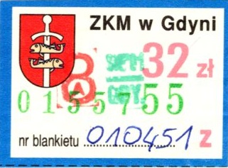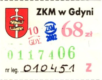 - Zarząd Komunikacji Miejskiej w Gdyni, herb miasta, numerator u dołu: