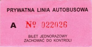 Pruszcz GdańskiBILETY JEDNORAZOWE:Nieznana drukarnia:Prywatna Linia Autobusowa, adres: Prywatna Linia Autobusowa: BILETY PKS: EM-KARTY: