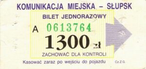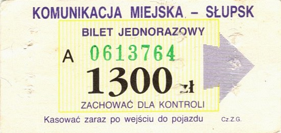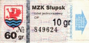 • Herb miasta z lewej strony, pole na wydruk kasownika, hologram DrukFont, MZK Słupsk:
