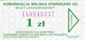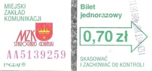 - Logo MZK, cena w strzałce z podatkiem VAT, różowy numerator, hologram GRAF: