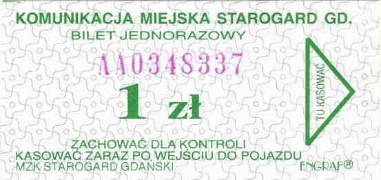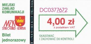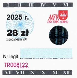 - Logo MZK, cena w strzałce z podatkiem VAT, numerator komputerowy, hologram GENUINE ORIGINAL: