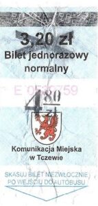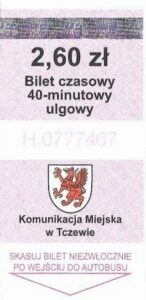 - Komunikacja Miejska w Tczewie, herb miasta, tło „kratka”, hologram DrukFont: