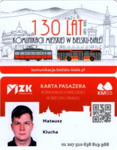 - MZK w Bielsku-Białej, logo miasta, hologram z logotypami miasta: