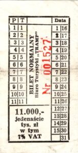 - Nominał, w tym 7% VAT, Biuro Turystyki „TRAMP”: