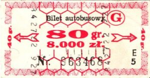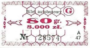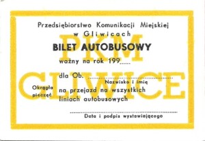 - W tle na środku plastry miodu, litera G – oznaczenie biletów gliwickich z czasów Unii Biletowej, ramka wokół biletu: