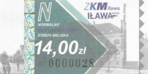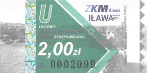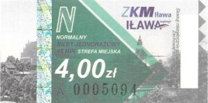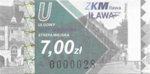 - Komunikacja Miejska – Iława, logo ZKM, pole na wydruk kasownika: