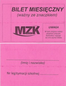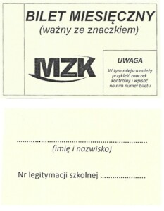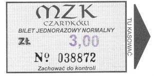 CzarnkówBILETY JEDNORAZOWE:Nieznana drukarnia:Komunikacja miejska – specjalna w Czarnkowie: MZK Czarnków: LEGITYMACJE DO ZNACZKÓW OKRESOWYCH: ZNACZKI OKRESOWE: