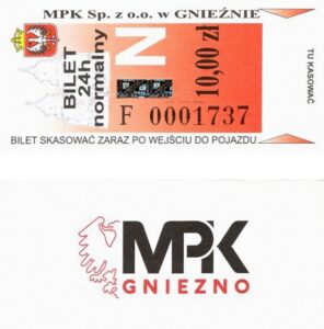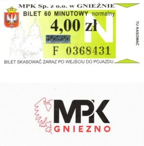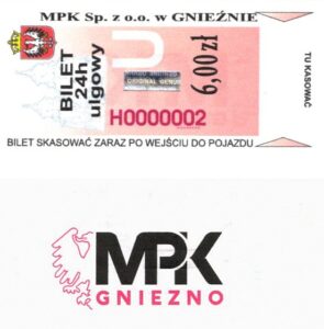 - Tło kolorowa„jodełka”, herb miasta, MPK Sp. z o.o. Gniezno: