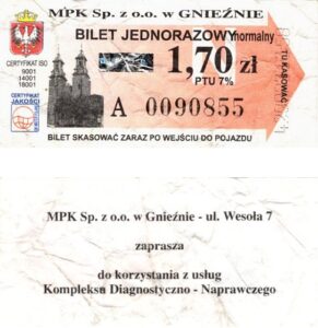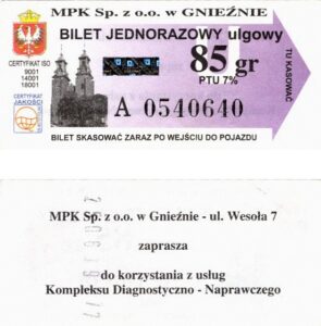 - W tle prostokąty, MPK Gniezno, różowy papier, Z.G.P.-3: