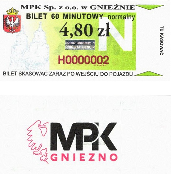 - Tło kolorowa„jodełka”, herb miasta, MPK Sp. z o.o. Gniezno:
