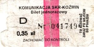 Koźmin Wielkopolski BILETY JEDNORAZOWE:Nieznana drukarnia:Komunikacja SKR-Koźmin: Komunikacja „CENTROL”: