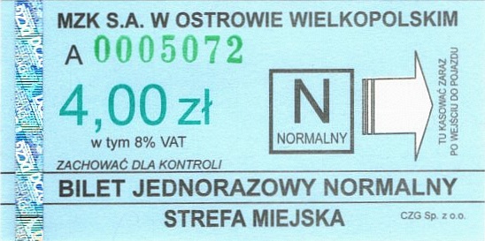 - U/N, ważność w strefie, w tym 8% VAT, hologram IGKM, CZG Sp. z o.o.: