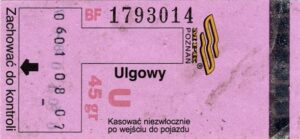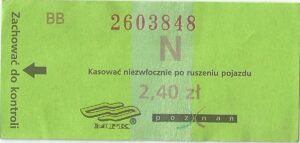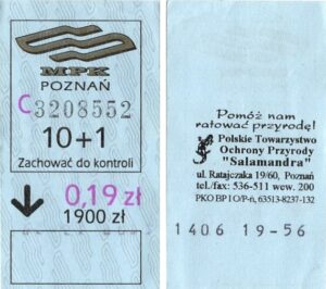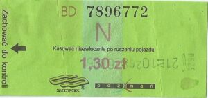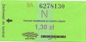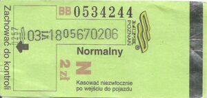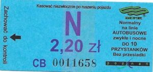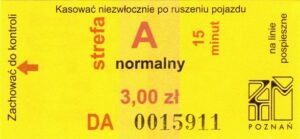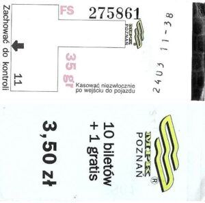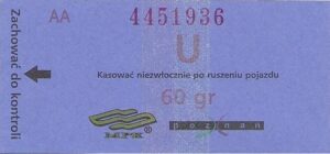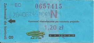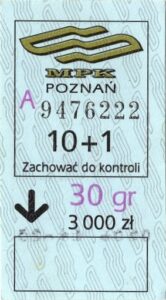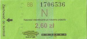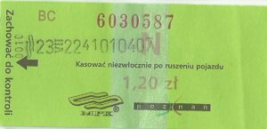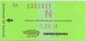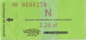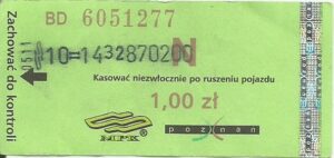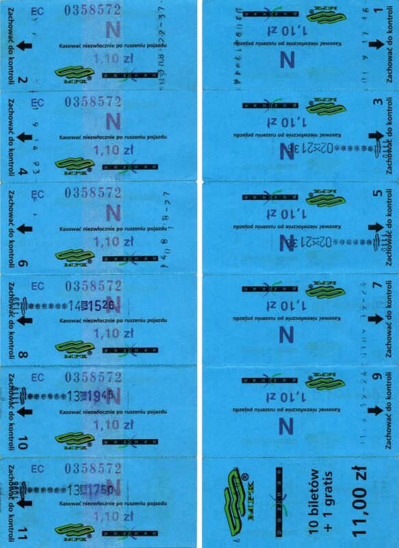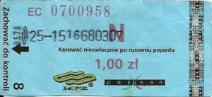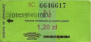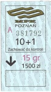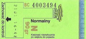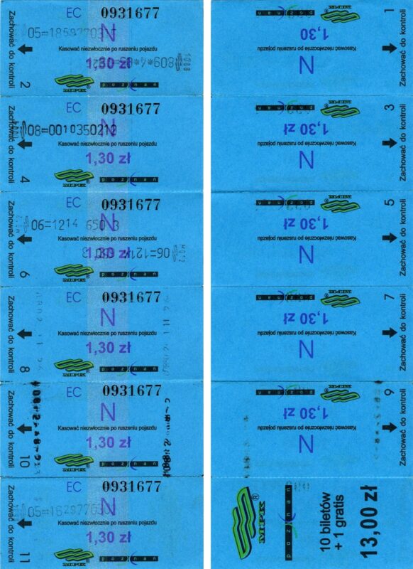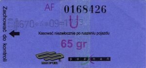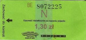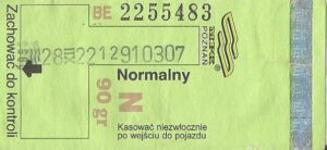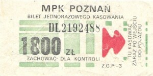 BILETY JEDNORAZOWE NA LINIE KOMERCYJNE MPK POZNAŃ (LATA 1999-2009):
