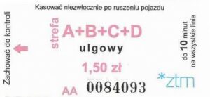 Uwaga: Bilety uzupełniające nie mają hologramu