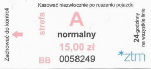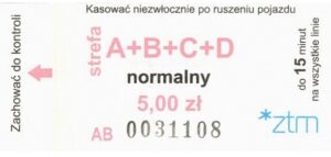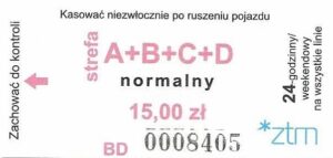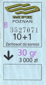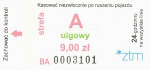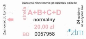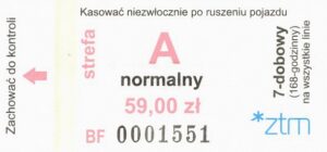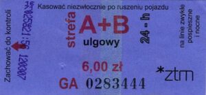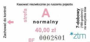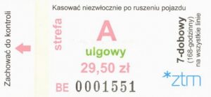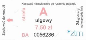 [Logo MPK oraz logo miasta umieszczone z prawej strony biletu]