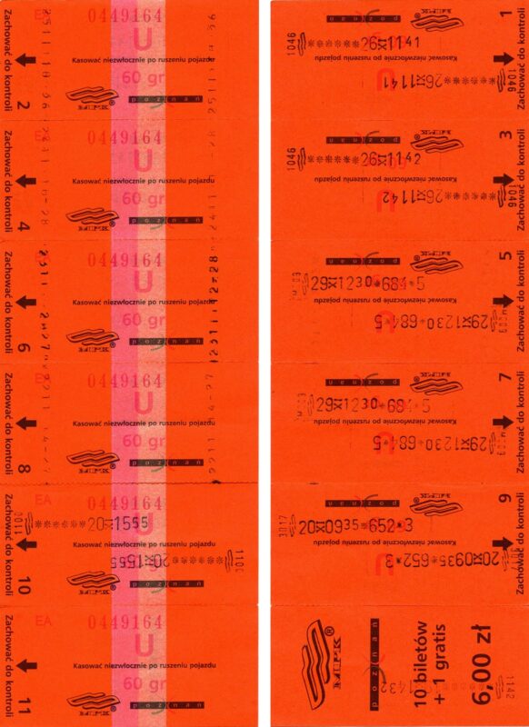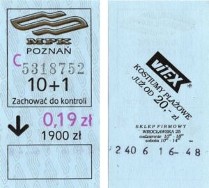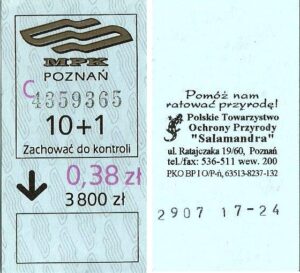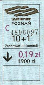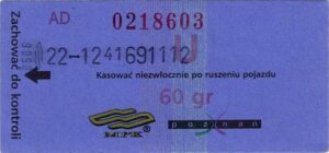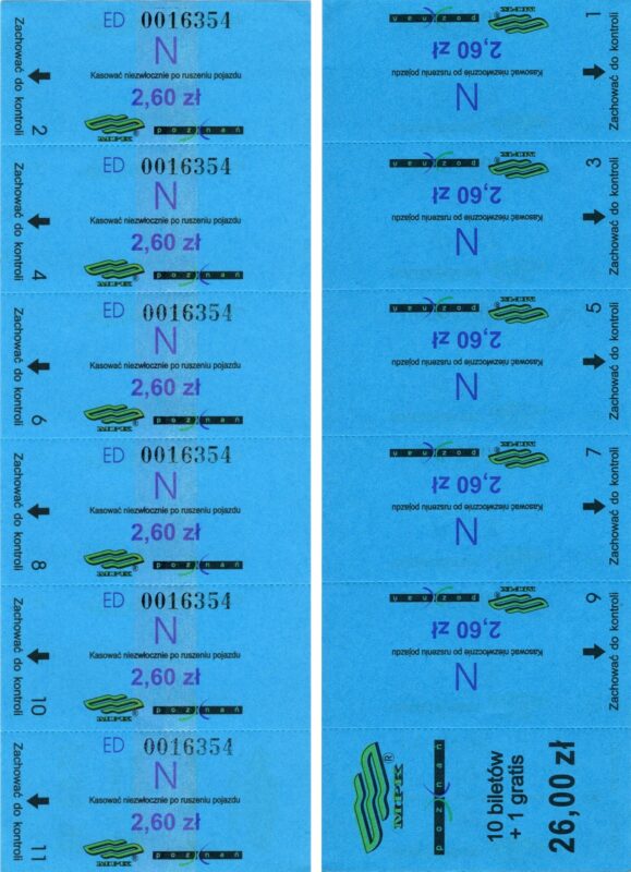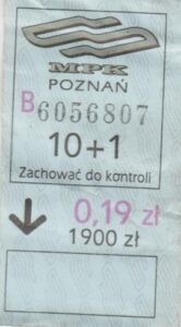 - Logo MPK, loga MPK Poznań w tle, pole na wydruk kasownika: