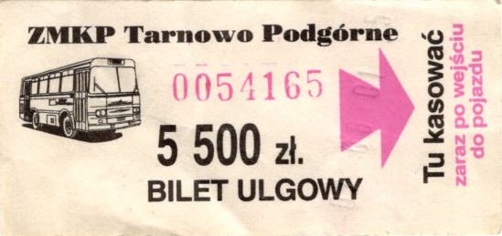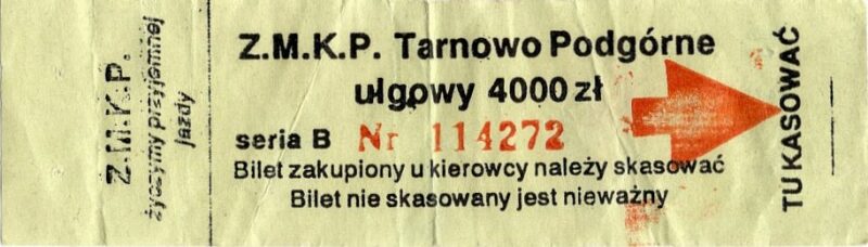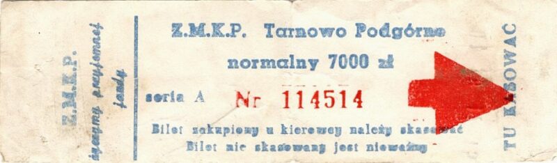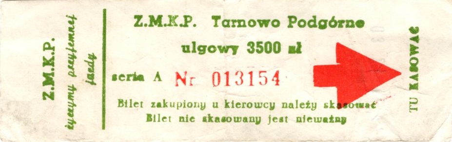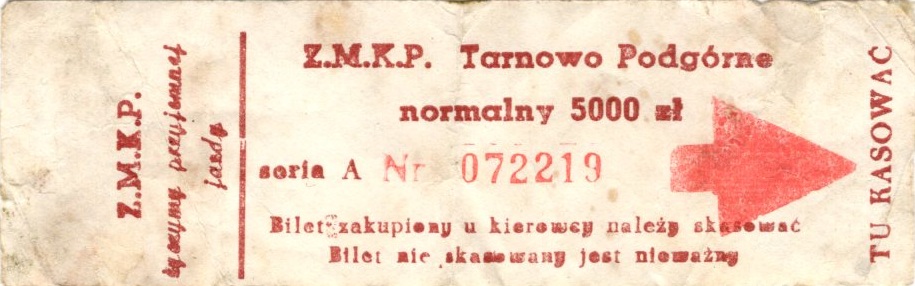 - Z.M.K.P., nominał, strzałka w polu na wydruk kasownika:
