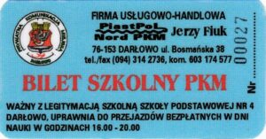 DarłowoBILETY JEDNORAZOWE:Nieznana drukarnia:Logotyp Prywatnej Komunikacji Miejskiej: BILETY OKRESOWE: EM-KARTY: