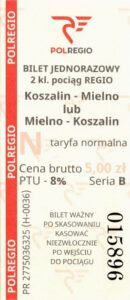 - Bilety ważne na trasę Koszalin <-> Mielno, logo POLREGIO:
