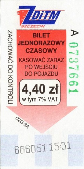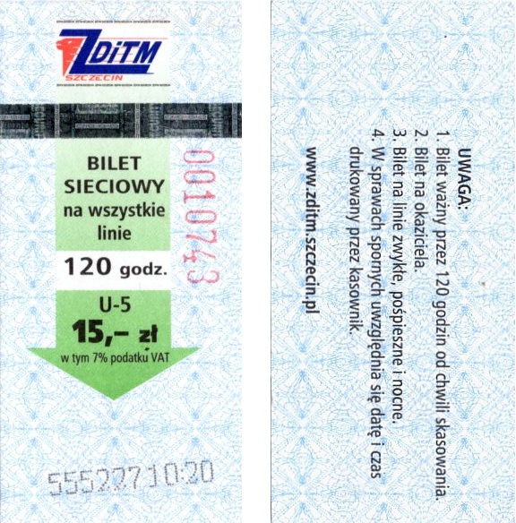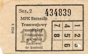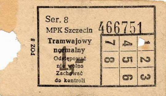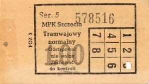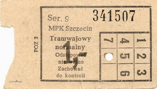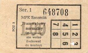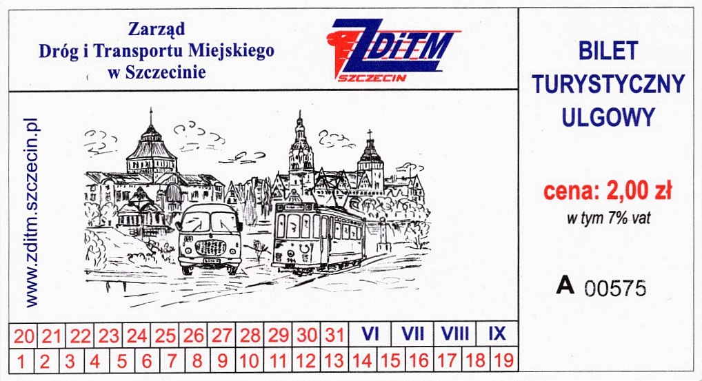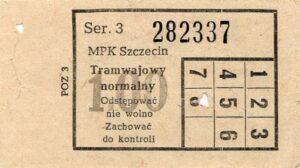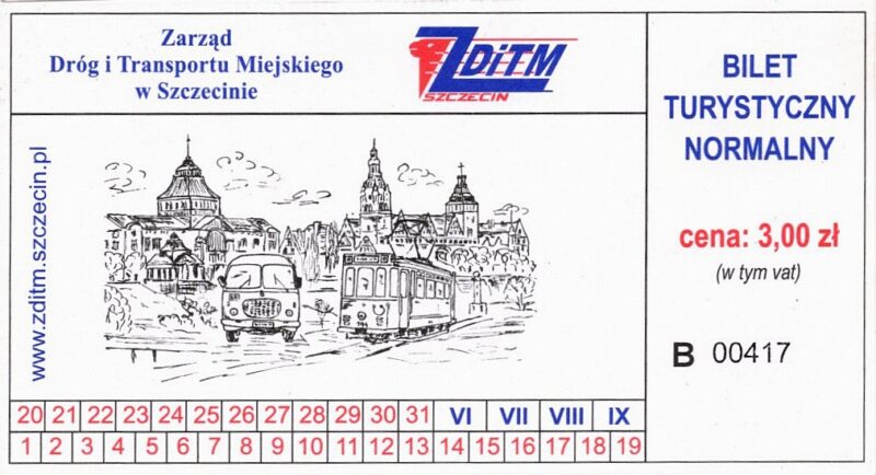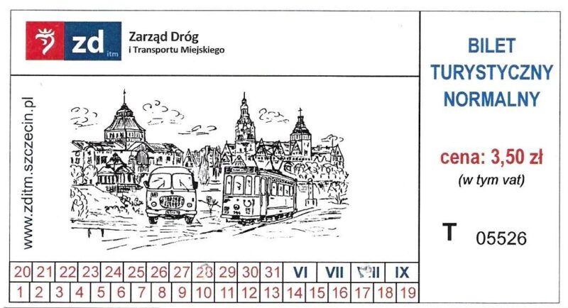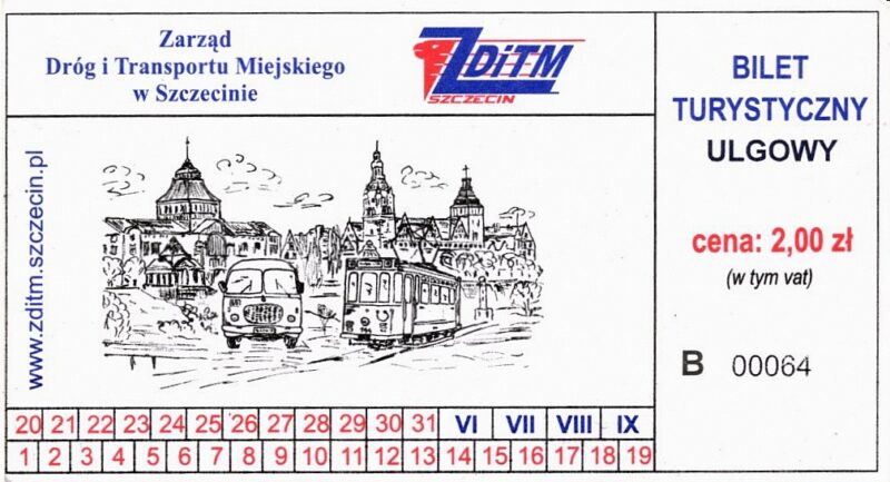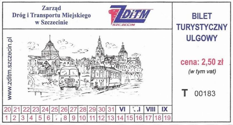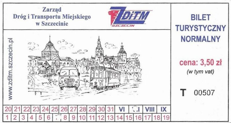 Z tyłu biletu napis: Zarząd Dróg i Transportu Miejskiego w Szczecinie