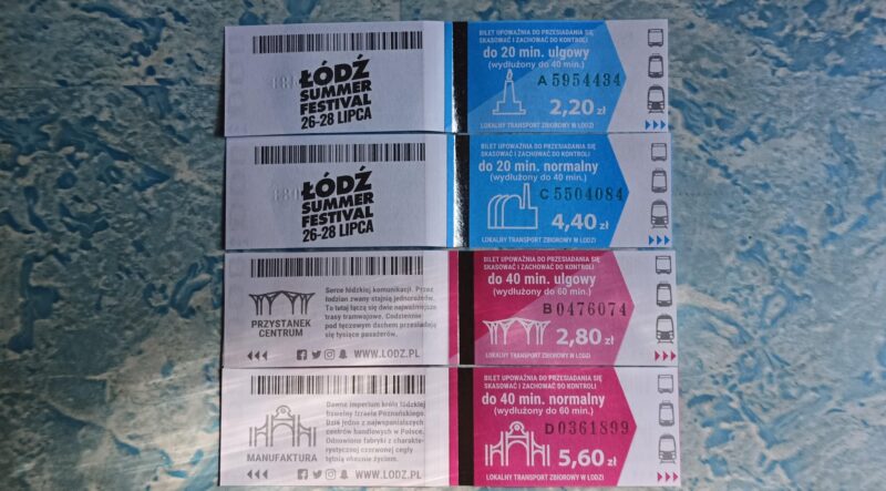 Na biletach o nominale 2,20 zł/4,40 zł na rewersie pojawiła się reklama Łódź Summer Festival.