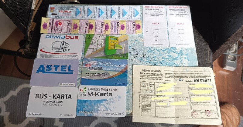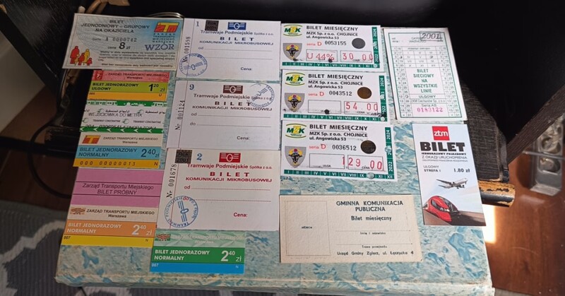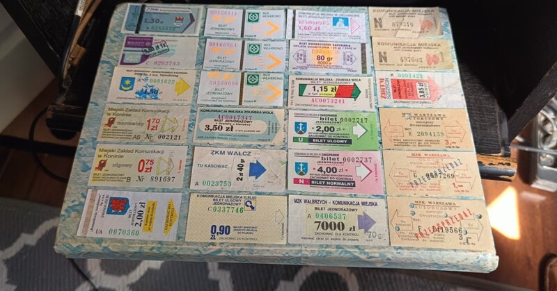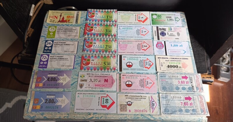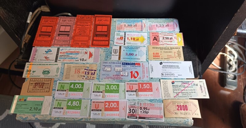 Kolekcja biletów komunikacji miejskiej i kolejowych