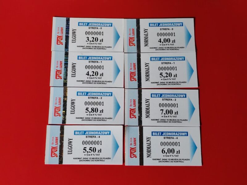 Sam wzór biletów od ostatniej modyfikacji nie zmienił się oprócz jednego szczegółu – nie są drukowane nazwy gmin, na które obowiązują, lecz naniesiono wyłącznie oznaczenie ważności strefy.