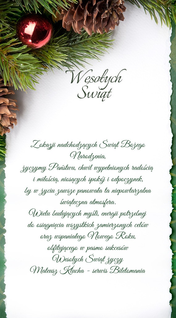 WydarzeniaWesołych Świąt! Mateusz Kluchapiątek, 22.12.2023poniedziałek, 25.12.202301 min Nawigacja wpisuPrevious: Oświęcim – bilety z logiem świecącym w UVNext: Poznań – 125 lat tramwajów elektrycznychDodaj komentarzTwój adres e-mail nie zostanie opublikowany. Wymagane pola są oznaczone *Komentarz *Nazwa Adres e-mail Witryna internetowa Δ