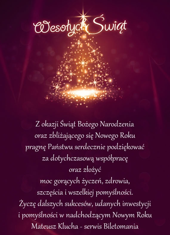 WydarzeniaWesołych Świąt i Szczęśliwego Nowego Roku! Mateusz Kluchaponiedziałek, 22.12.2025poniedziałek, 22.12.202501 mins Nawigacja wpisuPrevious: Nowości z Oświęcimia