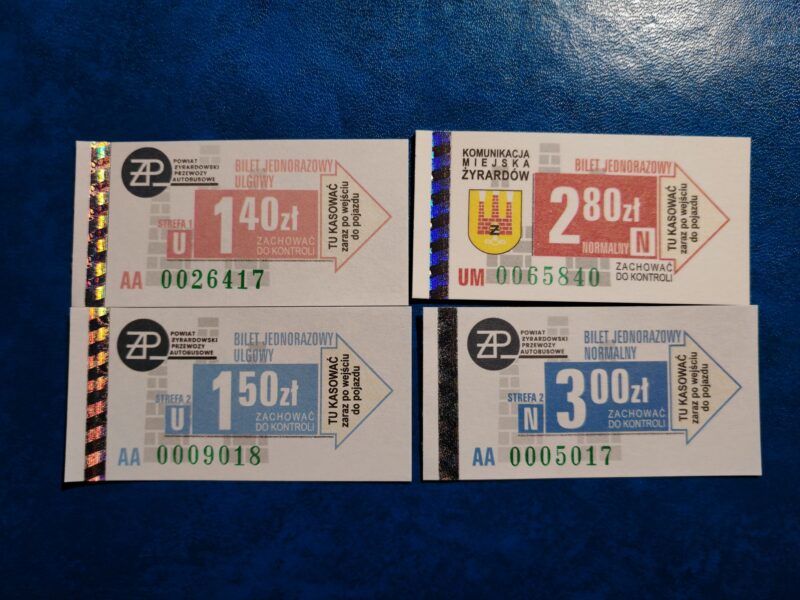 Otóż od 17 lutego br., dzięki powstaniu Związku Powiatowo-Gminnego „Żyrardowskie Przewozy Autobusowe” nastąpiły zmiany w komunikacji żyrardowskiej – między innymi część linii zmieniło trasy/wydłużono, a także – jak widać – wzór biletów uległ modyfikacji (no i w końcu po tylu latach w obiegu pojawiły się bilety podmiejskie, co warto odnotować!)